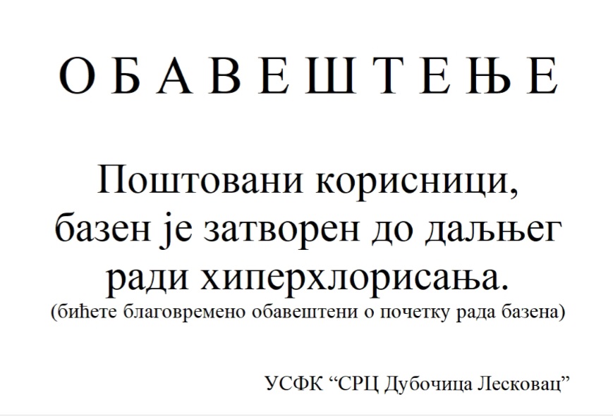 Danas je na zvaničnom sajtu bazena, i to za danas, objavljeno obaveštenje da olimpijski bazen u okviru SRC Dubočica neće raditi zbog- hiperhlorisanja, te da je zatvoren do daljnjeg. Smatramo da je i naše jučerašnje obraćanje javnosti, između ostalog, uticalo da se konačno reaguje. Ali postavlja se suštinsko pitanje- zašto je morala da se diže javnost, zašto je morala da reaguje opozicija, da bi se bazen zatvorio i preduzele mere koje se podrazumevaju?, navodi se u saopštenju GrO Srbija Centar (SRCE).
