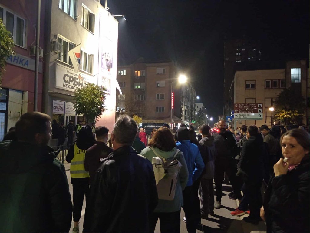 Kolona je otišla do prostorija Srpske napredne stranke (SNS) koje je čuvao kordon policije gde su pokazivali crvene šake i uzivikivali „ruke su vam krvave“.