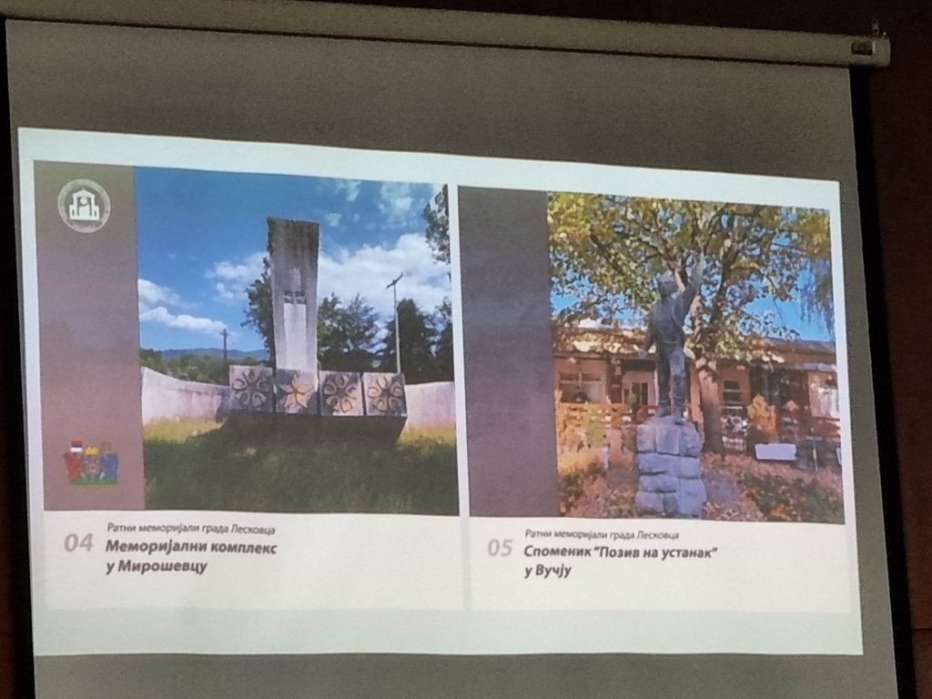 Posle Surdulice i Gadžinig Hana na jugu Srbije, i grad Leskovac dobio je Studiju zaštite ratnih memorijala, zapravo bazu podataka od 11 poglavlja u tri toma i 5 brošura, u kojima je evidentirano 267 ratnih memorijala sa ovog područja, a u samom gradu Leskovcu 54, dok je uništeno 29 spomen obeležja.