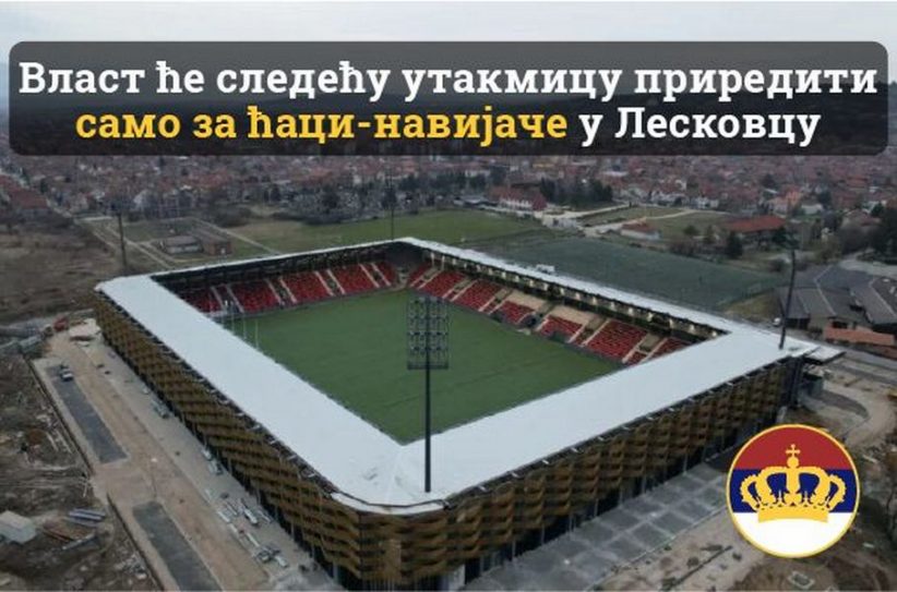 Pokret obnove Kraljevine Srbije (POKS) kritikovao je predlog predsednika Fudbalskog saveza Srbije (FSS) Branka Radujka da se meč reprezentacija Srbije i Albanije odigra u Leskovcu, na stadionu kapaciteta oko 8.000 mesta.