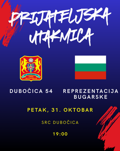 Rukometni klub Dubočica 54 večeras će odigrati prijateljsku utakmicu protiv rukometne reprezentacije Bugarske. Susret je na programu od 19 časova u SRC Dubočica, a ulaz je slobodan za sve ljubitelje rukometa.