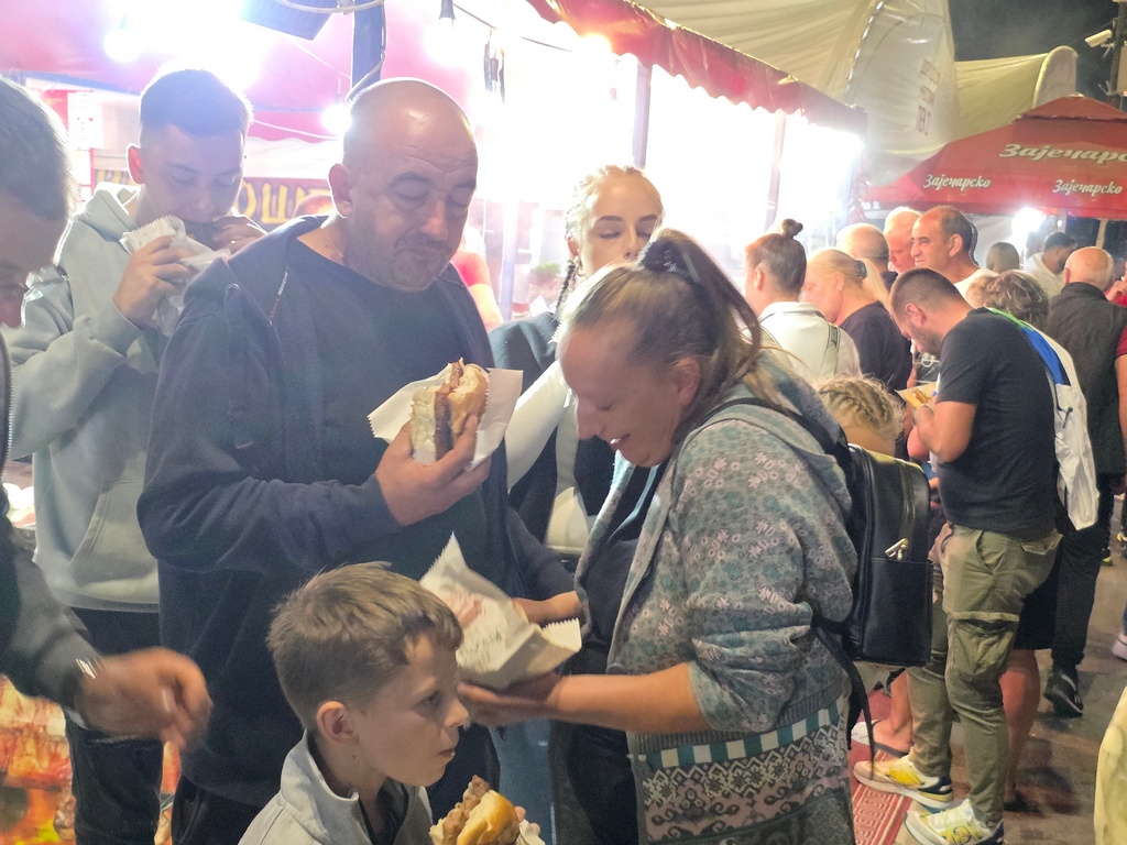 Slično je i na drugim štandovima, mada su iskusniji oprezni: „Ovo je tek prvo veče i mnogi su došli zbog pevačice Tee Tairović. Videćemo kako će biti nadalje“, kaže roštilj-majstorica dok okreće gurmansku pljeskavicu u koju uporno gleda jedan mladić preko puta.