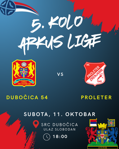 Rukometni klub Dubočica 54 ugostiće u subotu, 11. oktobra ekipu Proletera iz Zrenjanina, u okviru 5. kola Arkus lige. Utakmica je na programu u SRC ,,Dubočica” i zakazana je za 18 sati.