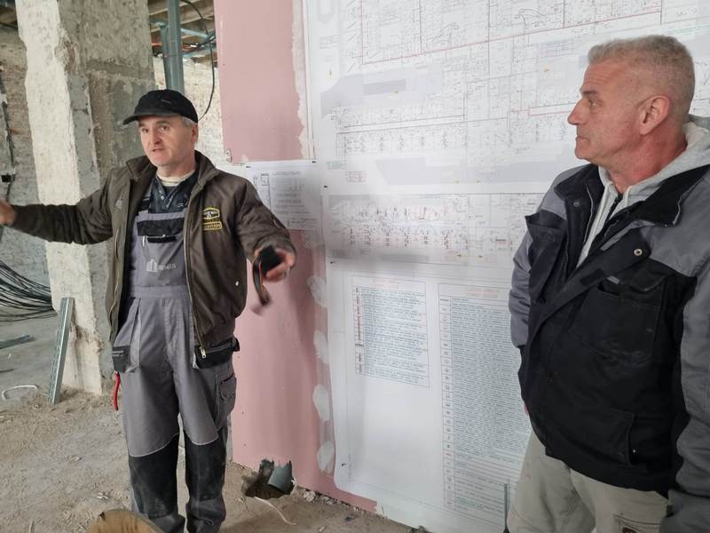 Trenutno se radi sistem grejanja, elektrike, gasovodne cevi se razvode, vodovodne i kanalizacione. Svi kablovi idu i po plafonu, kad se u pitanju sobe, gde će se kasnije pokriti onim spuštenim.