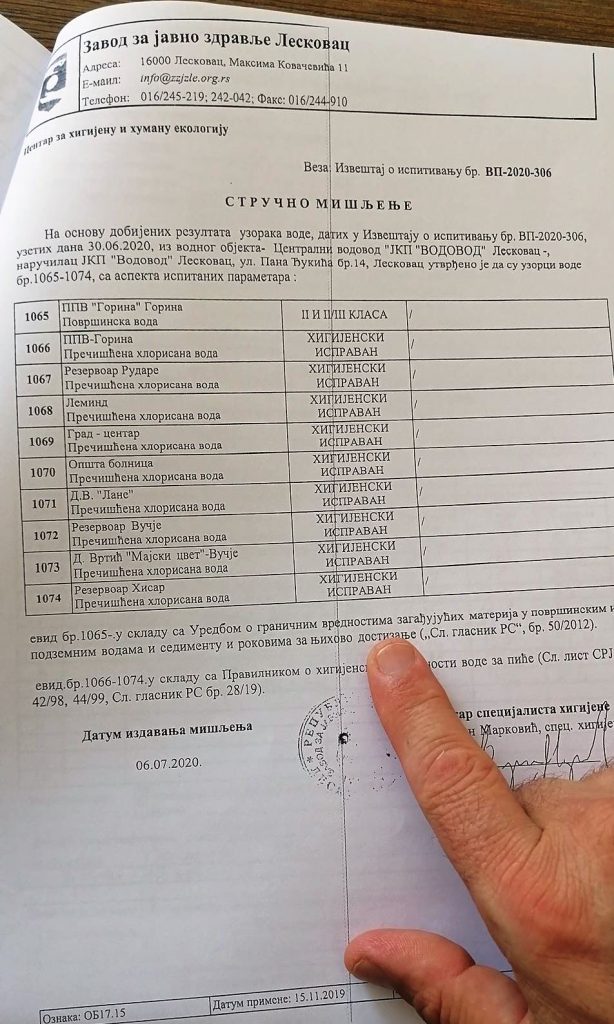 Novinar juGmedie imao je uvid u rezultate uzorkovanja ovde koje su sproveli JKP Vodovod Leskovac i Zavod za javno zdravlje Leskovac,  a na osnovu izvršenih analiza ustanovljeno je da se voda u Leskovcu može koristiti i za piće i za spremanje hrane.
