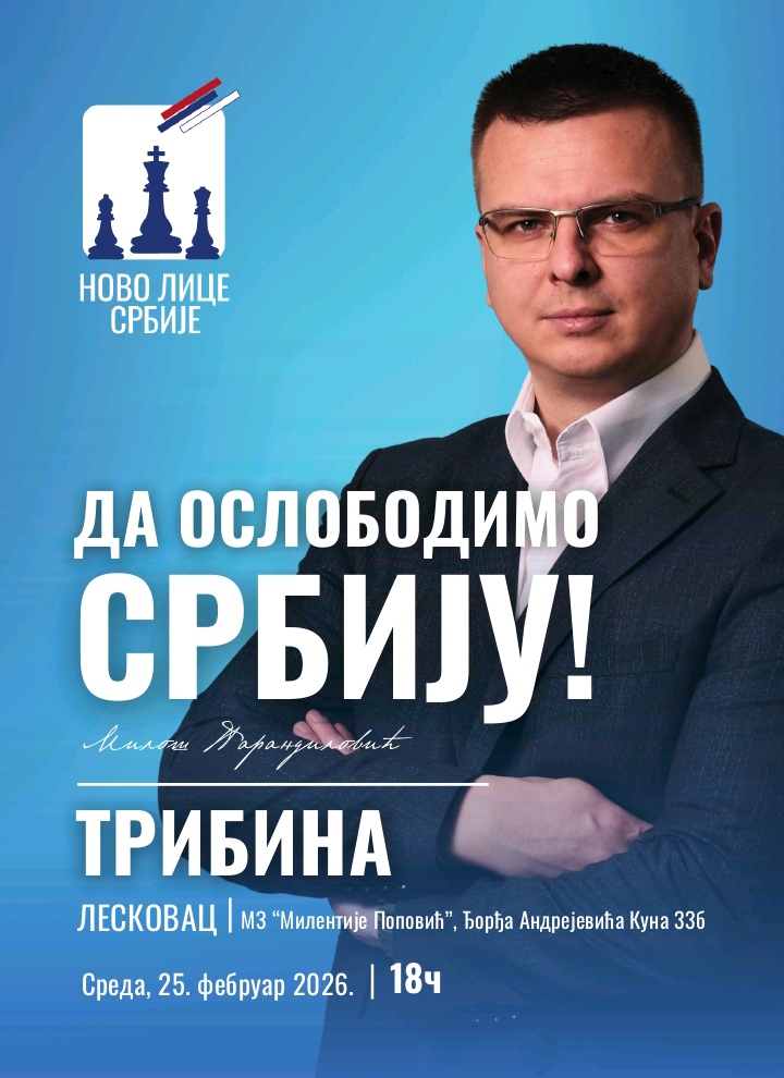 Tribina Novog lica Srbije biće održana sutra 25. februar sa početkom u 18 časova u prostorijama Mesne zajednice „Milentije Popović“ u naselju Dubočica u Leskovcu.